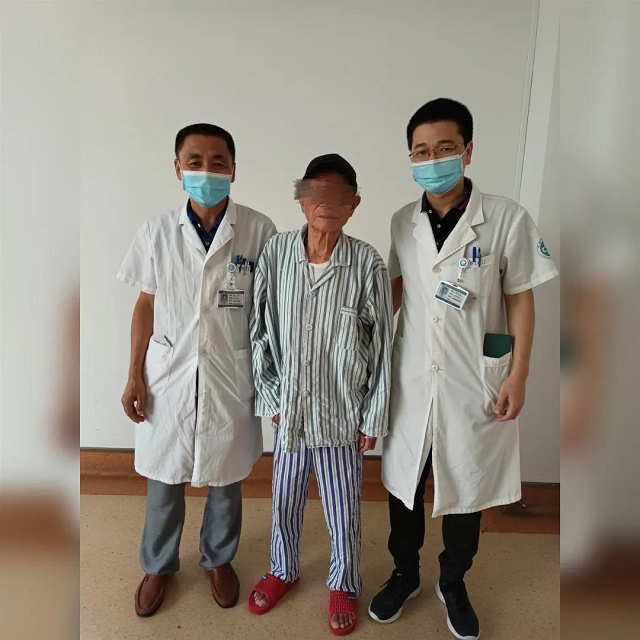 老爺子入院后,還被查出伴有高血壓、心律失常和慢性腎衰竭等一堆合并癥,較平時那些普通骨折病例復雜棘手。骨傷二科主任蔡錦成主任中醫(yī)師高度重視這例超高齡患者,帶領團隊認真分析老人的骨折病情及影像資料,并聯(lián)系心內、呼吸、神內和腎內等科室會診保駕護航。在排除手術禁忌癥并周全準備后,由柳巖主任醫(yī)師、董智勇副主任醫(yī)師團隊為老人順利施行了PKP(經(jīng)皮球囊擴張椎體后凸成形術)手術。責任護士陳文霄等還精心指導他加強踝泵運動和股四頭肌收縮等功能鍛煉,多管齊下幫助老人加快早期痊愈。已過期頤之年的詹老爺子想不到術后第二天就能試著下地行走了,于是有了開頭那一幕。