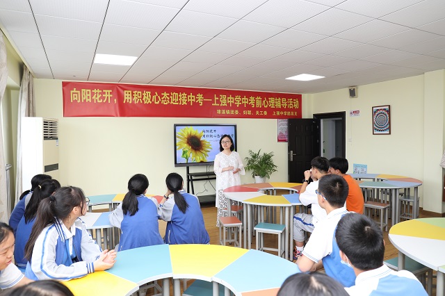 6月7日,湖州市吳興區(qū)埭溪鎮(zhèn)團委、上強中學團總支、吳興區(qū)陽光心理公益中心聯(lián)合開展“向陽花開,用積極心態(tài)迎接中考”的考前心理減壓活動,邀請國家二級心理咨詢師朱弘老師給即將中考的初三學生開設(shè)“心理減壓課”,從精神上為學生們緩壓、減壓,讓青少年在增長知識的同時確保身心也健康成長。 何偉衛(wèi)