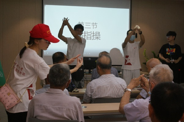 為了豐富老年人的日常生活,關(guān)懷阿爾茲海默老人,宣傳科普阿爾茨海默癥,實(shí)踐團(tuán)在今夏的活動(dòng)中首次使用溫州話(huà)版科普短片,幫助普通話(huà)語(yǔ)言能力不強(qiáng)的老人們加深對(duì)阿爾茲海默的了解。除了血糖血壓常規(guī)測(cè)量、阿爾茲海默癥初篩,他們還組織豐富的活動(dòng)為老人帶去關(guān)懷與歡樂(lè)。他們和老人共栽多肉、一同插花剪窗花……還教授老人預(yù)防阿爾茲海默癥的手指操教學(xué),修身養(yǎng)氣的八段錦練習(xí),更有新潮的廣場(chǎng)舞。關(guān)愛(ài)老人的身心健康,實(shí)踐團(tuán)一直在前行。