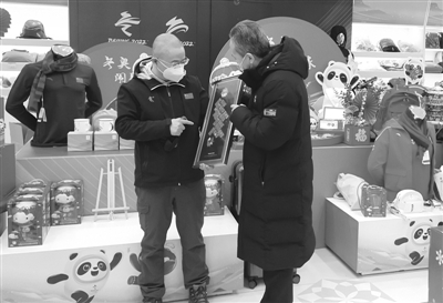圖為游客選購(gòu)冬奧會(huì)產(chǎn)品。