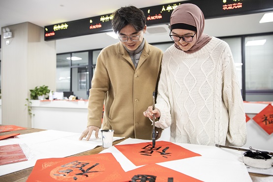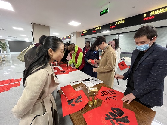 近日,中國計量大學組織在校留學生開展“寫福字迎新春”活動。來自錢塘區(qū)文聯(lián)的書法家和留學生們一起揮毫潑墨,書寫寓意吉祥的春聯(lián)和福字,送上滿滿的新春寄語。在校留學生們躍躍欲試,紛紛寫下屬于自己的福字,感受中華傳統(tǒng)文化魅力和濃濃的溫情年味。