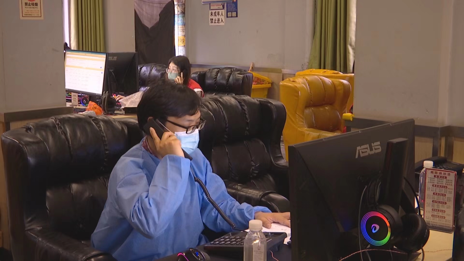 網(wǎng)吧里坐著一個個身穿紅馬甲的工作人員,一臺電腦,一個電話是標(biāo)配,在不斷更新的海量數(shù)據(jù)中,他們要通過一個個電話,捕捉到其中有價值的信息。這是桐君街道新物色的臨時流調(diào)“大本營”,5月10日上午,當(dāng)接到數(shù)據(jù)平臺上的重點人員信息時,桐君街道第一時間將流調(diào)大本營搬到了網(wǎng)客網(wǎng)吧中。桐廬縣桐君街道疫情專班負(fù)責(zé)人蔣凱說:“因為我們考慮到也沒這么多電腦,臨時在網(wǎng)吧租用了臨時場地作為我們辦公場地,來組織縣里的流調(diào)力量!