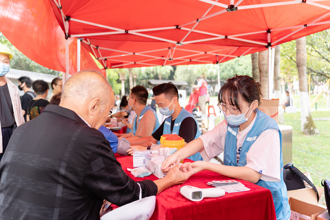 活動(dòng)現(xiàn)場(chǎng),團(tuán)隊(duì)成員們通過(guò)科普宣傳阿爾茨海默病科學(xué)知識(shí),讓更多民眾關(guān)注阿爾茨海默病,做到早預(yù)防、早篩查、早就診。還通過(guò)手指操,面具制作等益智游戲的互動(dòng),增強(qiáng)中老年人群的社區(qū)社交能力。溫州醫(yī)科大學(xué)附屬第一醫(yī)院、溫州醫(yī)科大學(xué)附屬第二醫(yī)院醫(yī)生在現(xiàn)場(chǎng)為老人進(jìn)行義診、免費(fèi)健康咨詢等服務(wù)。此外,專門針對(duì)45歲及以上中老年人進(jìn)行認(rèn)知評(píng)估,并計(jì)劃對(duì)鹿城區(qū)所有百歲老人進(jìn)行免費(fèi)的體檢服務(wù)。
