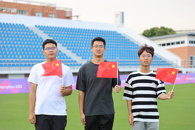 此外,量大學子們還親手折出500個五角星,粘貼于“相約計量、共迎國慶”主題噴繪墻上,五顆黃色星星在紅色星星為底的“中國地圖墻”上格外閃耀!耙郧啻褐、奮斗之我,為民族復(fù)興鋪路架橋,為祖國富強添磚加瓦……”同學們齊聲喊出“強國有我”的錚錚誓言,聲音響徹校園上空。