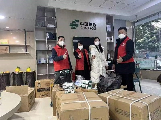 早在兩天前,永嘉縣紅十三愛心社社長邵若珍得知山區(qū)文化禮堂需要防疫物資,第一時間對接縣委宣傳部,認(rèn)領(lǐng)免費提供首批防疫物資。認(rèn)領(lǐng)后,邵若珍和愛心社社員們便馬上行動起來,到處打聽購買渠道,最短時間內(nèi)全力籌更多的物資。兩天里,邵若珍電話不停、步履不停,終于在平臺點單日把防疫物資搬運到車上,運送到永嘉郵政。這批“愛心防疫禮包”由永嘉郵政免費配送給各文化禮堂,這條郵路也成了一條“愛心之路”。