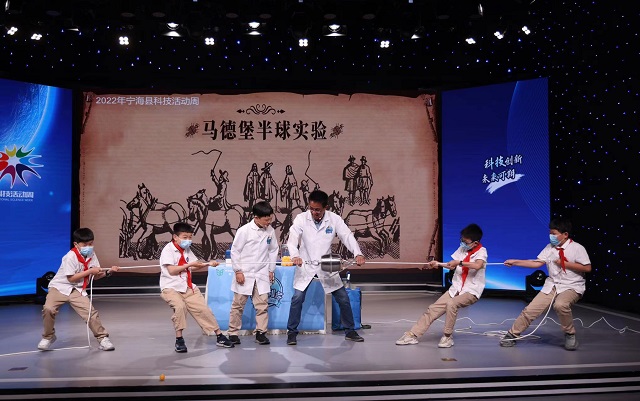日前,寧海縣孔布利多科學(xué)真探社的5位老師,助陣寧波市海曙區(qū)廣德湖小學(xué)第十屆科技節(jié),為該校師生帶去了一場(chǎng)“科幻視覺盛宴”:馬德堡半球、空氣炮、液氮、乒乓球射擊等科學(xué)實(shí)驗(yàn),讓同學(xué)們驚嘆連連、贊不絕口。