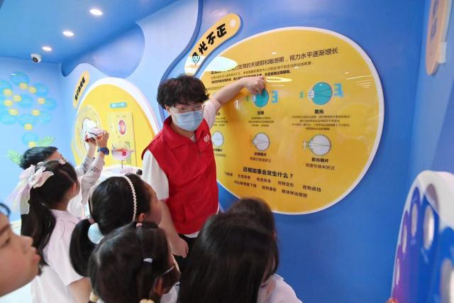 據(jù)介紹,眼健康科普館分為五大區(qū)域,包括大廳接待區(qū)、愛眼講演區(qū)、科普教育區(qū)、互動體驗區(qū)、低視力康復(fù)區(qū),體驗內(nèi)容分為“小小驗光師”和“小小眼科醫(yī)生”兩類眼健康研學(xué)活動,針對不同年齡段兒童青少年提供不同的體驗項目。
