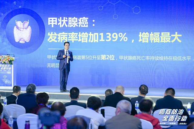 甲狀腺癌在發(fā)病譜第5位升至第2位,發(fā)病率由27.53/10萬增至65.90/10萬,增長139.38%,增幅最大。甲狀腺癌死亡率維持在極低水平,無明顯變化(由0.49/10萬變?yōu)?.46/10萬)。