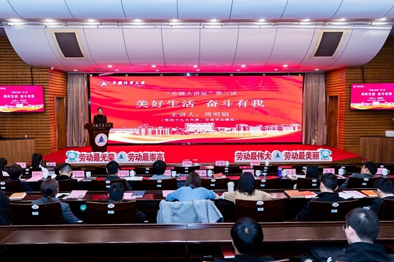 這是該校第三屆勞動教育月啟動儀式暨“勞模大講壇”第三講活動現(xiàn)場。本次勞動教育月是學(xué)校學(xué)習(xí)貫徹習(xí)近平新時代中國特色社會主義思想主題教育系列活動之一,以“學(xué)深悟透新思想、鑄魂育人擔(dān)使命”為宗旨,是落實(shí)立德樹人,開展“守初心、育新人”專項行動的重要實(shí)踐。