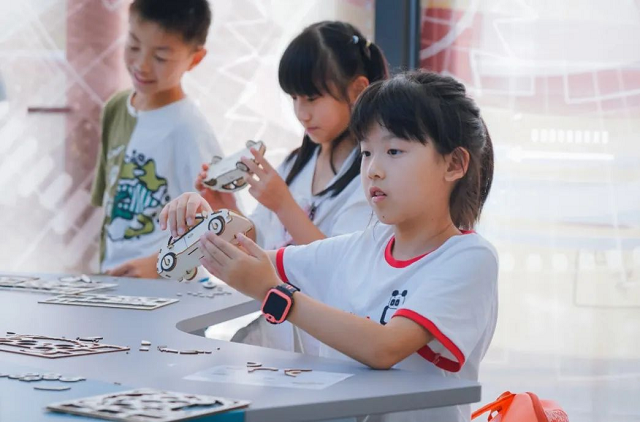 聆聽以核技術(shù)和雙碳為重點(diǎn)的主題宣講,體驗(yàn)無(wú)人機(jī)飛躍障礙,親手拼搭積木車……在科創(chuàng)基地,孩子們認(rèn)真聆聽講解,不時(shí)詢問(wèn)交流,積極互動(dòng)體驗(yàn),體會(huì)到科技的趣味與奧妙。