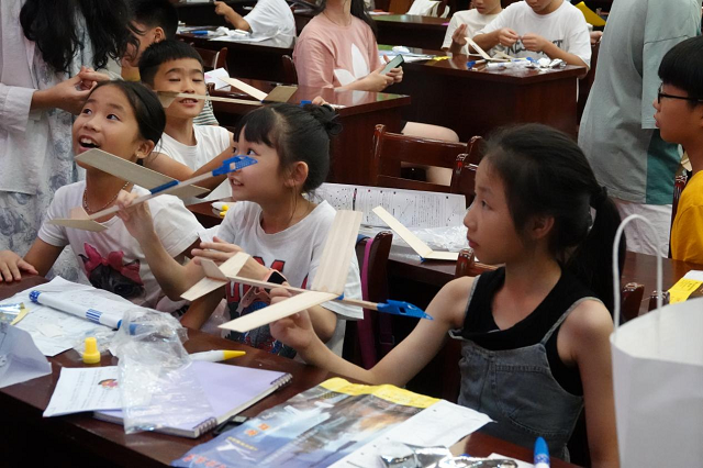除了日常的趣味科學(xué)課堂,溫大的師生們還為山區(qū)孩子們開(kāi)展了“科普進(jìn)校園”航模實(shí)踐活動(dòng),手把手教山區(qū)孩子們制作飛機(jī)與火箭,并在水云學(xué)校的操場(chǎng)上進(jìn)行實(shí)踐演練。當(dāng)填充滿火藥的飛機(jī)在火箭的助力下成功升天、到達(dá)一定高度與火箭成功分離后,孩子們都發(fā)出了興奮的贊嘆聲。對(duì)很多山區(qū)孩子來(lái)講,這是他們第一次親手發(fā)射火箭,成功的體驗(yàn)也讓熱愛(ài)科學(xué)的種子悄然植入孩子們幼小的心田。