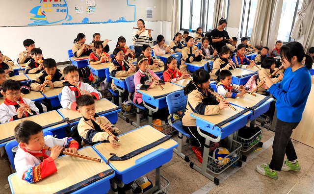 浙江省溫嶺市新河鎮(zhèn)長嶼小學是一所民族學校,溫嶺市政協(xié)委員在幫助學校落實“雙減”政策中,專門給學生們開設了橫笛、豎笛、葫蘆絲等民族樂器課,讓學生既豐富了課余生活,又傳承了中華民族的傳統(tǒng)文化。