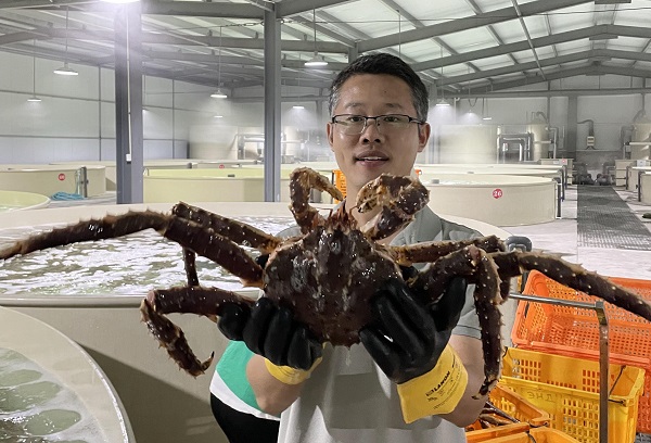 “不采取保活暫養(yǎng)措施的話,帝王蟹一般出水超過三個(gè)小時(shí),就會死亡。我們現(xiàn)在能做到暫養(yǎng)一個(gè)月,成活率達(dá)到98%以上。”浙江大學(xué)舟山海洋研究中心海洋生物綜合利用研究所副所長肖金星說。