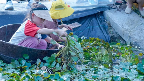 “渡頭煙火氣,處處采菱歸。”為了保證菱角能新鮮上市,菱農(nóng)們往往在凌晨時(shí)分,就開始了新一天的采摘工作。躬耕隴畝,方知辛苦。學(xué)生們來(lái)到南湖菱種植基地,乘菱桶而下,深入菱叢間,了解菱角種植生長(zhǎng)環(huán)境,體驗(yàn)了一番采菱勞作。