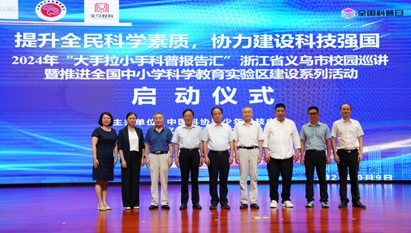 9月9日,由中國科協(xié)青少年科技中心、義烏市科協(xié)、義烏市教育局主辦的“提升全民科學(xué)素質(zhì),攜手建設(shè)科技強(qiáng)國——2024年大手拉小手科普報告匯浙江省義烏市校園巡講活動”暨義烏市推進(jìn)全國中小學(xué)科學(xué)教育試驗區(qū)建設(shè)系列活動在稠城一小正式啟動,來自清華大學(xué)老科協(xié)科普演講團(tuán)的5位老師也一起參加了啟動儀式。