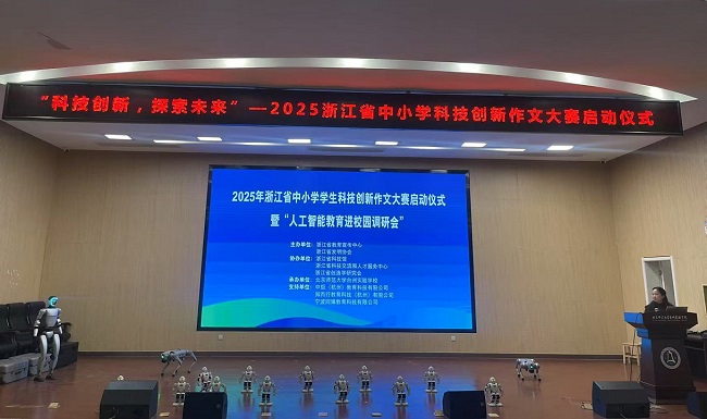 動,倡導(dǎo)中小學(xué)生探索未來、永保好奇心。省科技廳科技人才與科普處顧秋陽指出今天舉辦的2025年浙江省中小學(xué)學(xué)生科技創(chuàng)新作文大賽啟動儀式暨“人工智能教育進校園調(diào)研會”意義非凡。新修訂《科普法》指出,中小學(xué)校、特殊教育學(xué)校應(yīng)當(dāng)利用校內(nèi)、校外資源,提高科學(xué)教育質(zhì)量,完善科學(xué)教育課程和實踐活動,激發(fā)學(xué)生對科學(xué)的興趣,培養(yǎng)科學(xué)思維、創(chuàng)新意識和創(chuàng)新能力。省科技廳堅持在“雙減”工作中做好科學(xué)教育加法,積極開展科技資源科普化托舉青年科技人才等試點工作,協(xié)同推進“千名科學(xué)家進校園播種”行動,組織科學(xué)家擔(dān)任科學(xué)副校長,開展科學(xué)精神教育和科學(xué)家故事創(chuàng)作等活動,取得了一系列成效。此次以“科技創(chuàng)新探索未來”為主題舉辦中小學(xué)學(xué)生科技創(chuàng)新作文大賽,從“我心中的科技館”、“心動的科普內(nèi)容”等角度提升青少年的科技創(chuàng)新素養(yǎng)和人文素養(yǎng),具有重要價值。