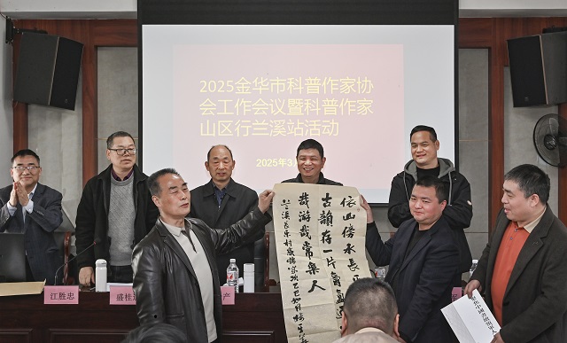 現(xiàn)場,授予長樂景區(qū)為“金華市科普作家協(xié)會(huì)科學(xué)文化交流基地”,重點(diǎn)展開民俗人文科普創(chuàng)作。樓其華、陳林方兩位科普書法名家向長樂古村贈(zèng)送書法作品。