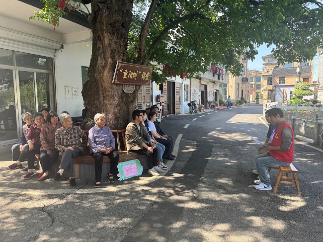 活動(dòng)現(xiàn)場(chǎng),宣講員結(jié)合“共富工坊”“數(shù)字鄉(xiāng)村建設(shè)”等專項(xiàng)補(bǔ)貼,為村民解讀與老百姓有關(guān)的種糧補(bǔ)貼、就業(yè)創(chuàng)業(yè)等政策。宣講員們摒棄照本宣科,將政策文件轉(zhuǎn)化為“苞谷地里的白話”,結(jié)合本村產(chǎn)業(yè)發(fā)展、就業(yè)幫扶等實(shí)際案例,用“拉家常”的方式為村民答疑解惑。