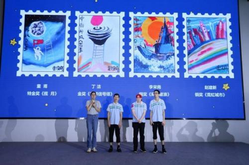 孩子們以郵票為窗口,將量子通信、智能醫(yī)療、禾下科技?jí)舻瓤萍荚妇叭谌敕酱绠嫹,勾勒出科幻世界。其中,洪顥的《禾下科技(jí)簟窇{獨(dú)特東方審美講述“科技+ 鄉(xiāng)土”故事,獲全國(guó)啟航組一等獎(jiǎng);張宸軒的《宇宙里的遐想》、楊奕桐的《夢(mèng)境未來城》也憑創(chuàng)意分別獲全國(guó)啟航組優(yōu)秀獎(jiǎng)、全國(guó)星途組優(yōu)秀獎(jiǎng)(以上三幅均獲得浙江賽區(qū)特金獎(jiǎng)),彰顯了孩子們非凡創(chuàng)作才華與想象力。