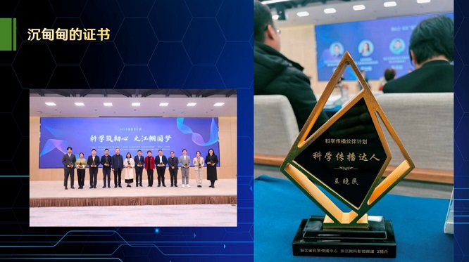 去年3月8日,在之江實(shí)驗(yàn)室,我鄭重接過“科學(xué)傳播達(dá)人”的證書。這個(gè)身份,不僅是認(rèn)可,更是一座橋梁——連接我的專業(yè)背景與“浙視介”平臺(tái),連接個(gè)體創(chuàng)作與主流媒體資源。