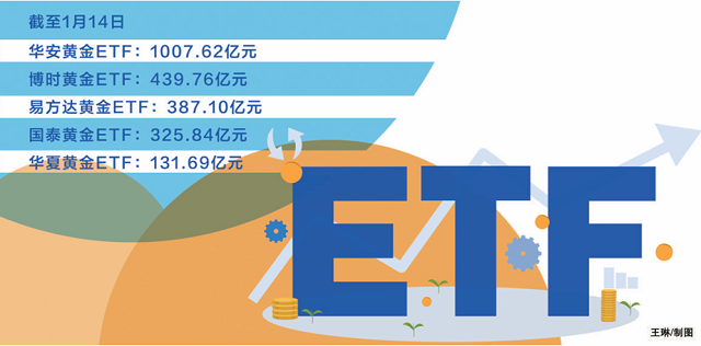 全市場首只千億元級黃金ETF出現(xiàn)。截至1月14日,華安易富黃金交易型開放式證券投資基金(以下簡稱“華安黃金ETF”)份額為101.62億份,規(guī)模首次突破千億元大關,達1007.62億元。