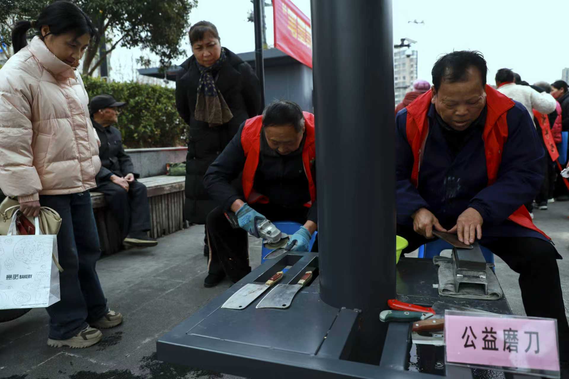 活動現(xiàn)場,書法志愿者揮毫潑墨,免費為居民書寫春聯(lián),濃濃墨香傳遞新春祝福。同時為居民公益理發(fā)、免費磨刀、衣物縫補、健康義診等便民服務,志愿者們耐心細致服務,讓居民在家門口感受到社區(qū)溫暖,贏得現(xiàn)場居民一致好評。
