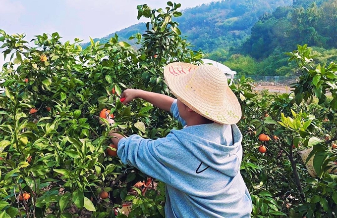 五豐村果農(nóng)正在果園采摘橘子。賈施東/攝