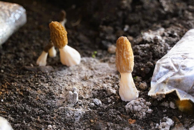 種植基地里剛生長出的羊肚菌 蔣飛/攝